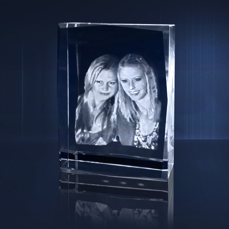 3D Crystal Studio are specialists in laser engraving into Crystal Glass. We engrave your 3D image into the middle of Crystal glass; Bring us your favourite photographs or email us and 3D Crystal Studio will engrave your memories permanently into the middle of Crystal Glass; We also engrave Corporate gifts, Corporate logo's and Corporate awards. Many different sizes and shapes. We use state of the art 3D modelling programs, and have qualified designers on hand to assist you achieve your required results. We also use a specialised in store 3D camera to generate a 3D photographic image of a person, couple or family which can then be engraved into a crystal block creating a beautiful life like image that lasts forever Very high quality "optically pure glass" is required in 3D crystal engraving , often referred to as "Optical Glass", so named because of the precise manufacturing process that is required to produce the required pure optical quality. Any "defect" within the crystal glass would influence the optical quality and so affect the laser as it penetrates. A defect would then cause the laser beam to "bounce" or "divert" off course and distort the result. For the subsurface laser engraving process to consistently produce perfect results it is essential that the quality of the optical crystal glass be uniform throughout the whole block. If you are interested in and of the crystals in our range, please do not hesitate to contact us. We will be pleased to inform you about the price and availability of any crystals selected by you.