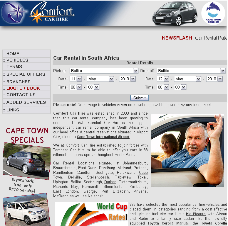 Car Rental in Cape Town with Comfort Car Hire. Rentals in Johannesburg and Cape Town